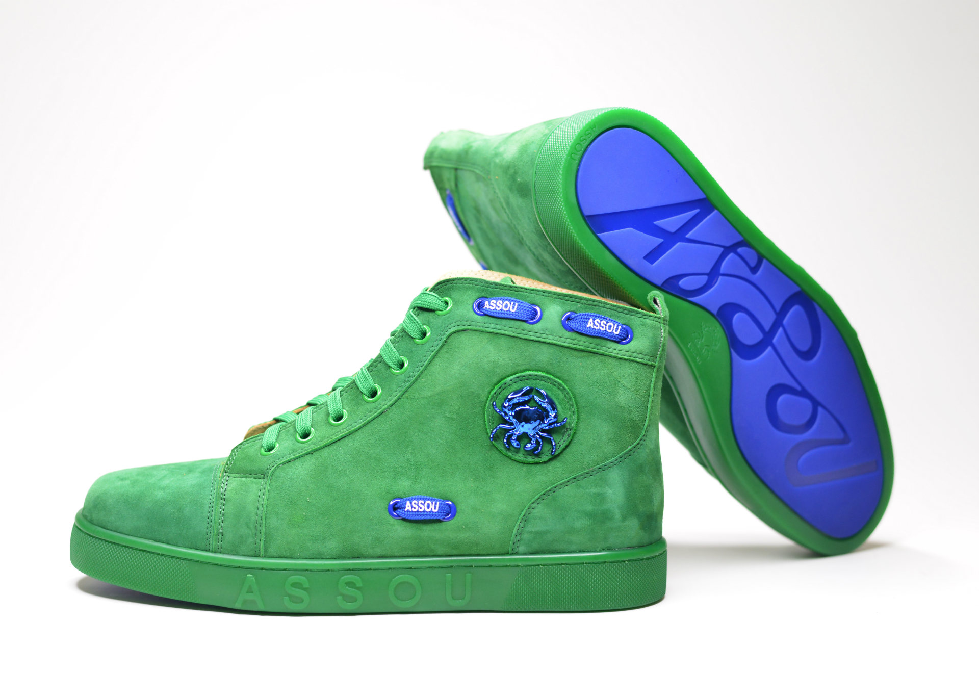 “Natura” have been crafted with a combinaison of different shades of green color. Totally made in an emerald suede fabric well combined with parakeet lace, shamrock metallic eyelets and basil rubber insole. And the labeled royal blue outsole.