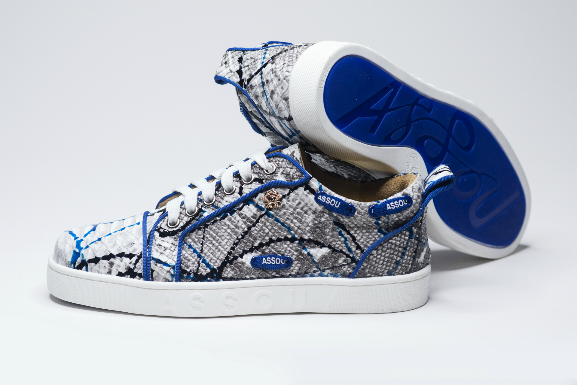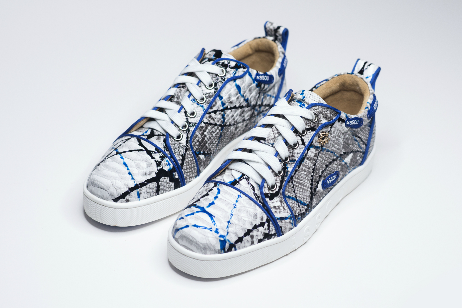 $300.00“Confidence ” have been crafted with a combinaison of different shades of gray color. These Low-Top Kicks are totally made in coin suede fabric well combined with porpoise lace, fossil metallic eyelets and smoke rubber insole and labeled royal blue outsole.